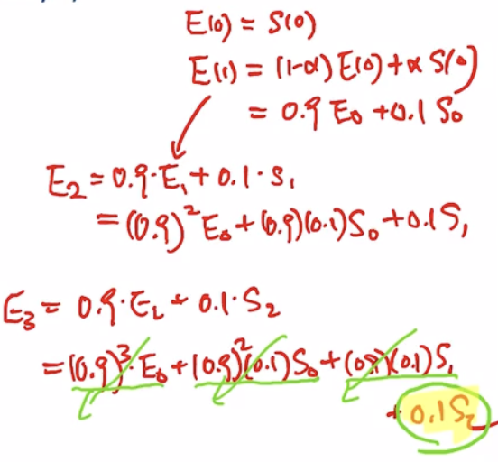 참고로 EWMA의 장점은 Ek를 도출하기 위해 필요한 정보가 Ek-1, Sk 밖에 없다는 것이다.
