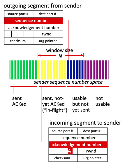 sequence/ack number : segment번호를 통해 수신한 segment의 순서, packet loss가 있는지 알 수 있다. 신뢰성있는 전달을 위해 사용된다.