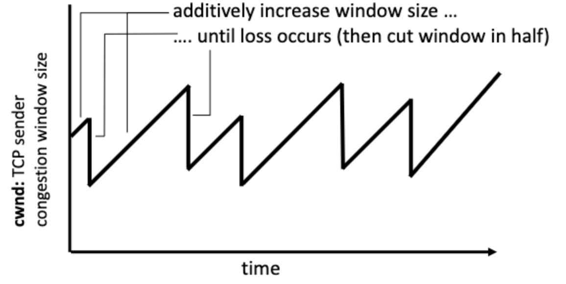 cwnd가 sending rate를 대변한다. 모양이 톱날 같다고 해서 saw tooth behavior이라고 한다.