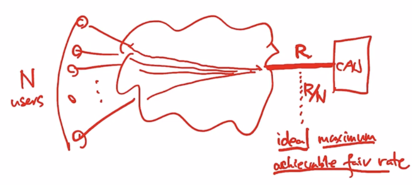 패킷 loss가 발생했을때 재전송한다. 재전송을 고려하면 각 host는 R/2보다 더 많이 보내게 된다.