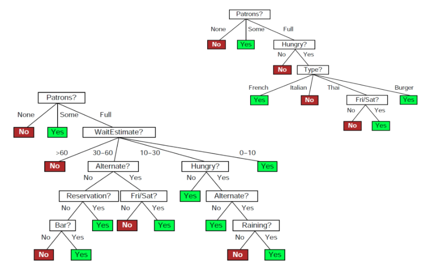 - 식당이 input으로 들어왔을 때 기다릴지 말지를 결정하는 decision tree를 만들어보자.