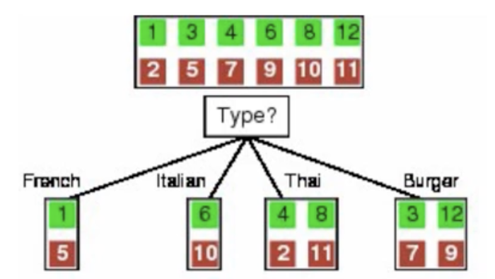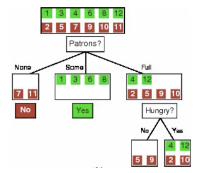 - 첫번째 attribute로 Type을 골랐을때, Patrons을 골랐을때 split되는 결과는 다르다.