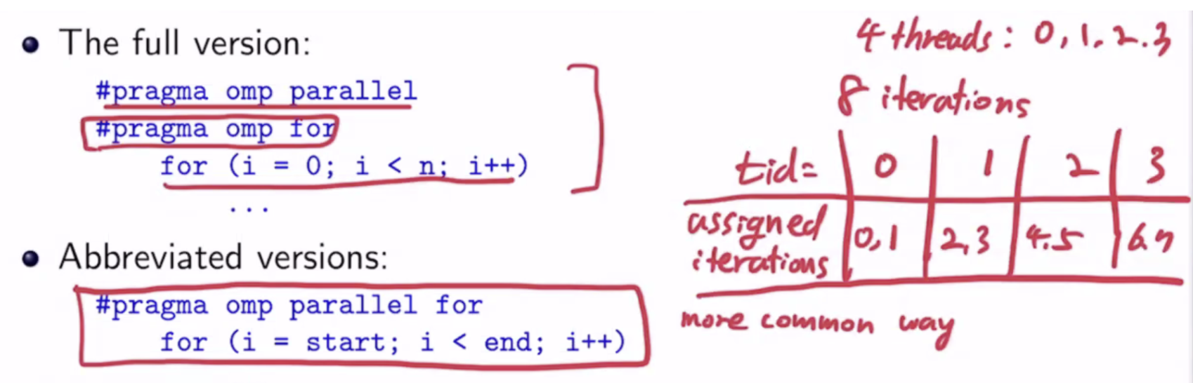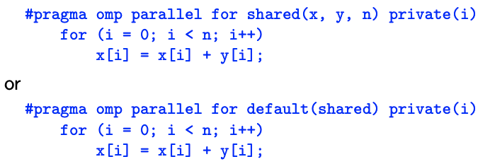 #pragma omp parallel for 는 #pragma omp parallel { #pragma omp for }의 축약형이다.