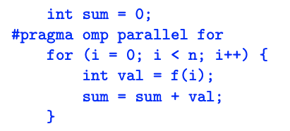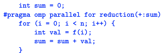 #pragma omp parallel for reduction(+:sum) private(x)