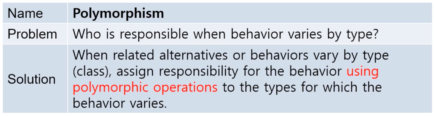 - 어떤 responsibility를 class에게 부여할때 관련된 information을 가지고 있는 class에게 부여하는 것이 적합하다.