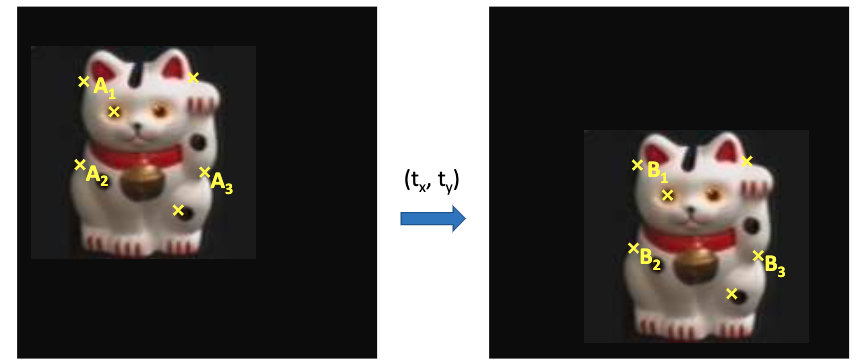 - 이미지가 위처럼 translation변환 되었고 샘플포인트 3쌍을 알고 있다.
