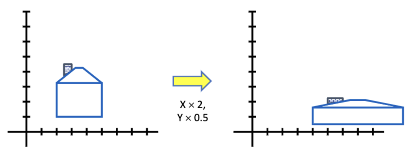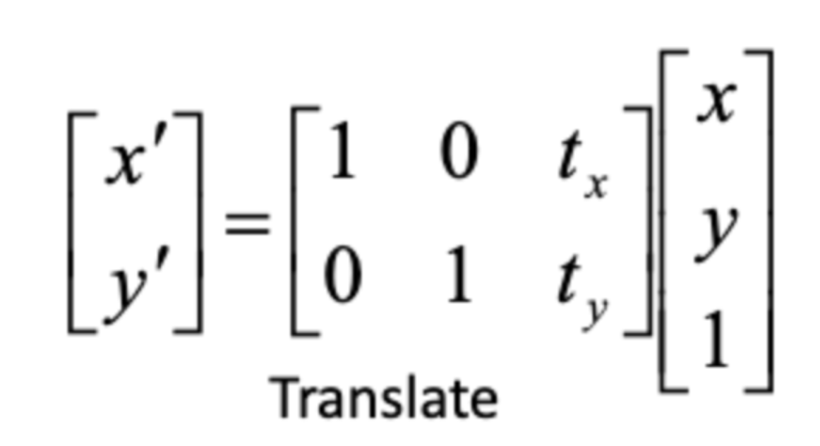 - 이동은 2*2 행렬로 표현이 불가능하다. 동차좌표계로 확장하여 행렬곱으로 나타낸다.