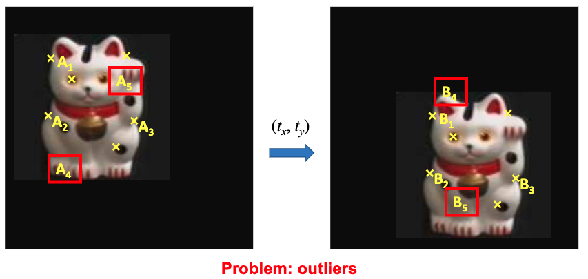 - 만약에 변환 시에 outlier가 생겼다면 robust하게 변환행렬을 구해야 한다.