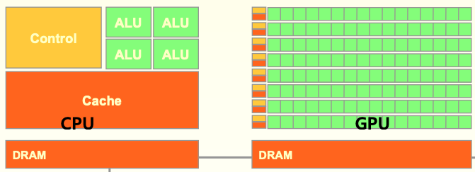 CPU는 2~16개의 코어로 구성되지만 GPU는 100~10000개의 코어로 구성된다.