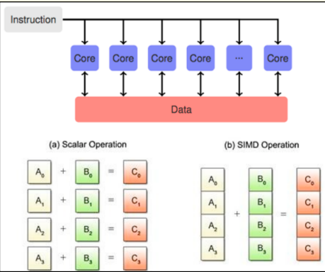 하나의 instruction이 여러 코어에서 동일하게 돌아가는 것을 SIMD processor라고 한다.