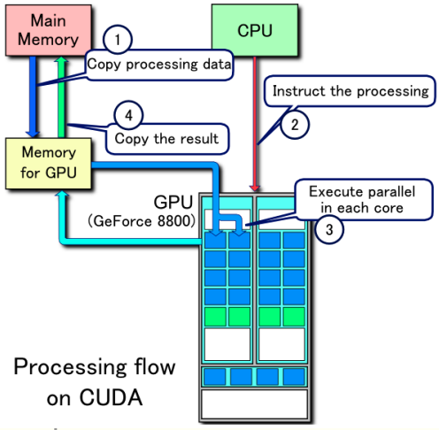 GPU 프로그래밍을 위해서 (NVIDA위에서) CUDA를 사용한다.