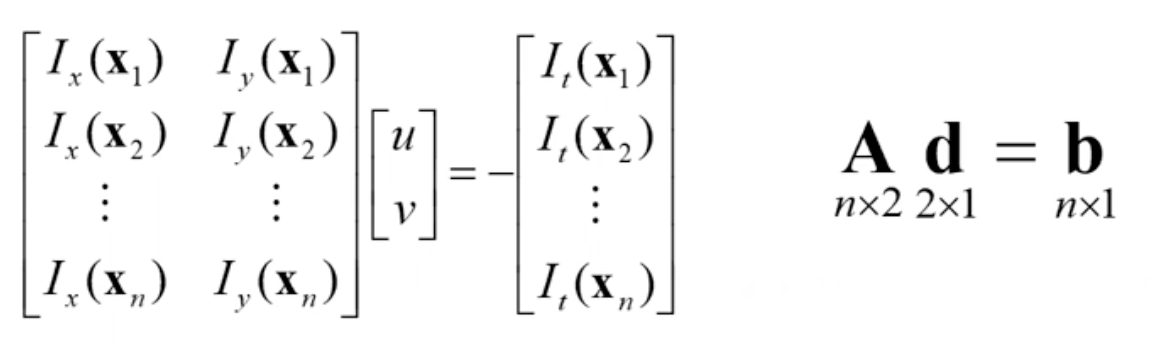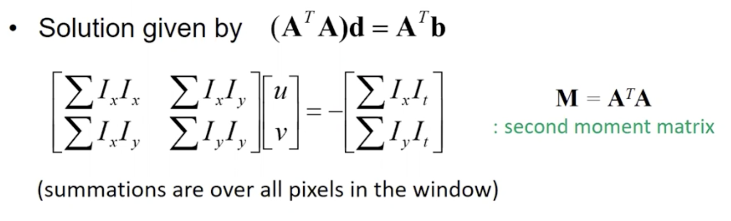 - 그러면 각 윈도우에 대해서 식이 9개가 나오므로 u,v 두 변수의 값을 구할 수 있다.