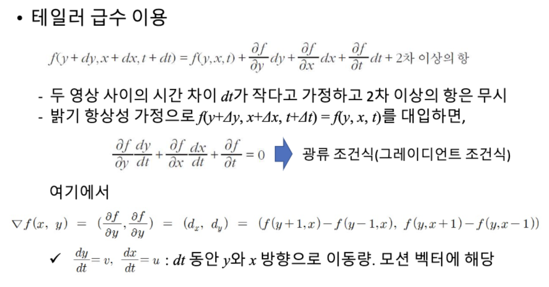 - 저 이동한 픽셀의 밝기는 동일하다고 가정한다.