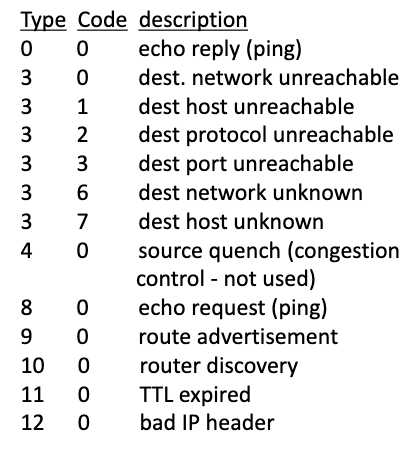 예를들어 traceroute는 UDP segment를 목적지로 보내는데, TTL=n일때마다 datagram을 버리고 ICMP 프로토콜로 11 0의 타입, 코드를 송신자에게 알린다.