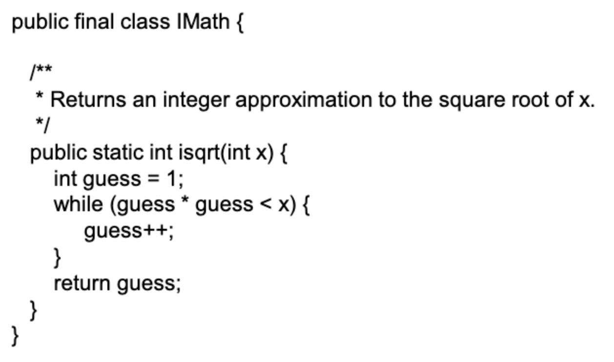 - IMath class에 isqrt함수를 만들었다. 이 함수를 검증하는 JUnit test class를 만들어보자.
