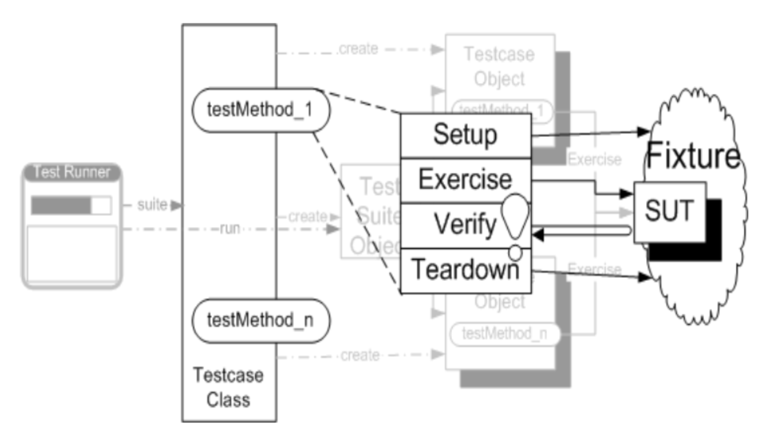 - 테스트 대상인, unit은 class가 될수도 있고 class들로 구성된 모듈이 될 수도 있다. 그 테스트를 수행하는 코드가 unit under test이다.