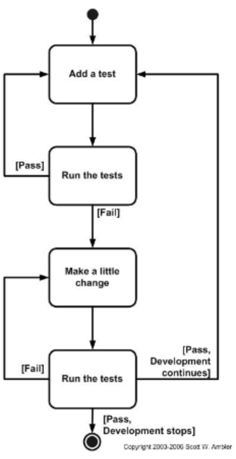 - 테스트를 통과할때까지 개발, 테스트를 반복한다. (agile 개발에서는 거의 표준으로 사용되는 방법이다)