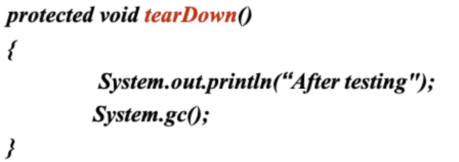 - 따라서 setUp과 tearDown을 override하면 테스트 케이스 메서드 수행 직전/직후 타 코드 실행이 가능하다.