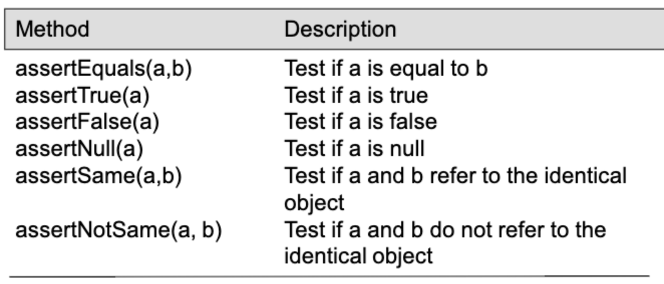 - JUnit에서는 위처럼 expectation과 결과값을 비교할수 있도록 다양한 함수가 제공된다.