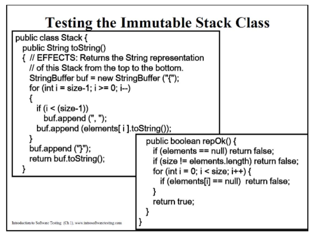 - 그런데 testRepOk 처럼 너무 복잡하게 전부다 검사하는 것은 좋지 않다.