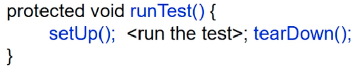 - JUnit에서 모든 runTest()는 내부적으로 setUp() -> 테스트 케이스 메서드 수행 -> tearDown()을 순서대로 호출한다.