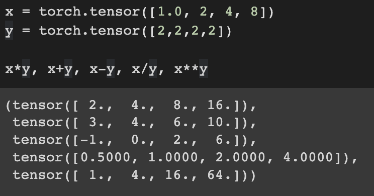 Unary operators, for example exponentiation, can also be applied elementwise
