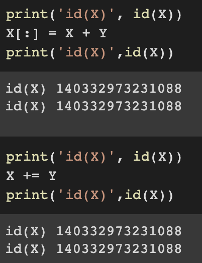 This means that python dereference the tensor that Y used to point to and instead point Y at the newly allocated memory