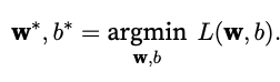 Again our goal is to find parameters (w*, b*) that minimize the total loss across all training examples.