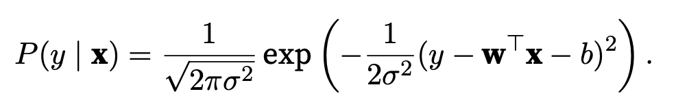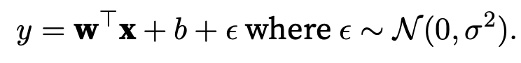 One way to motivate linear regression (with the mean squared error loss function ) is to formally assume that observations arise from noisy observations, where the noise is normally distributed as follows: