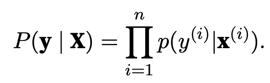 according to the principle of maximum likelihood, the best values of parameters w and b are those that maximize the likelihood of the entire dataset
