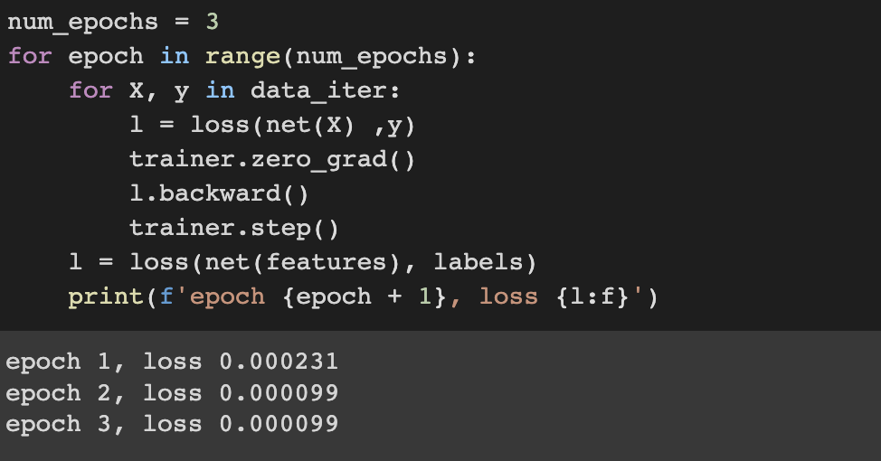 • Generate predictions by calling net(X) and calculate the loss l (the forward propagation).