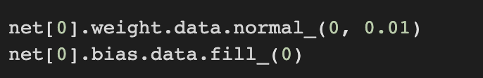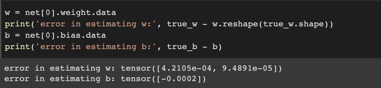 To access parameters, we first access the layer that we need from net and then access that layerʼs weights and bias.