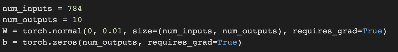 So out weights will constitute a 784 × 10 matrix and the biases will constitute a 1 × 10 row vector.