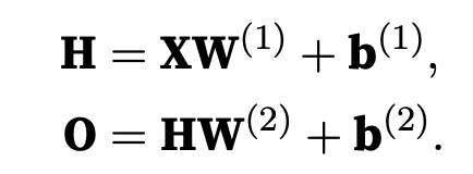 Since the hidden and output layers are both fully connected, we have hidden-layer weights W(1) ∈ Rd×h and biases b(1) ∈ R1×h and output-layer weights W(2) ∈ Rh×q and biases b(2) ∈ R1×q.