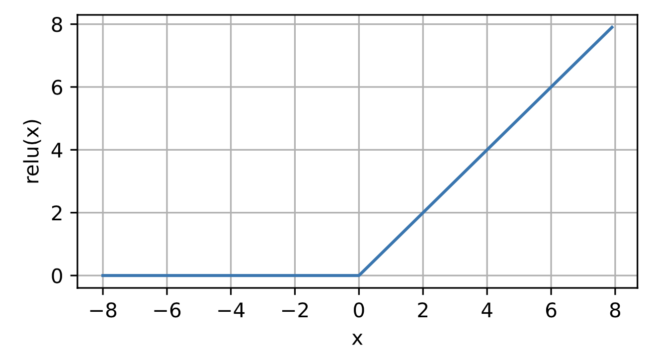 Rectified linear unit (ReLU) is defined as the maximum of that element and 0: retains only positive elements and discards all negative elements by setting the corresponding activations to 0