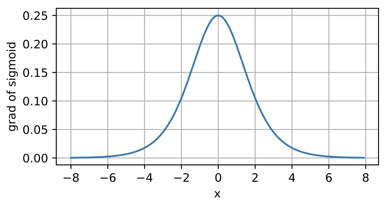Note that when the input is 0, the deriva- tive of the sigmoid function reaches a maximum of 0.25.