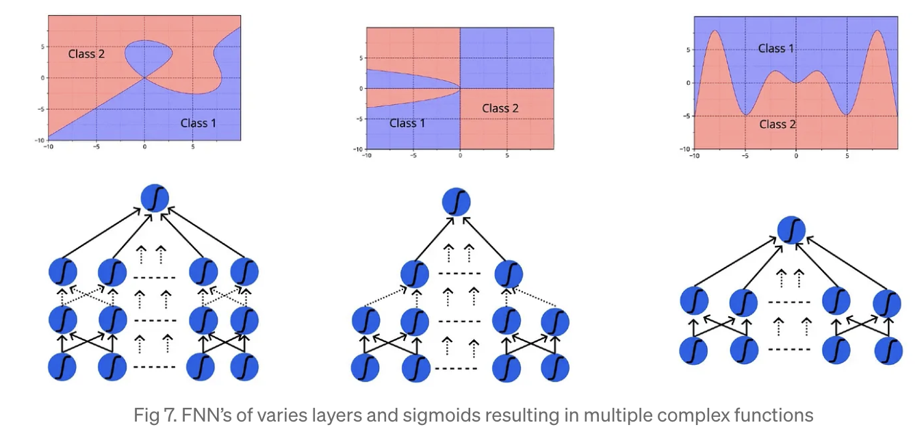 Now, by joining multiple such sigmoid curves at different layers of FNN,