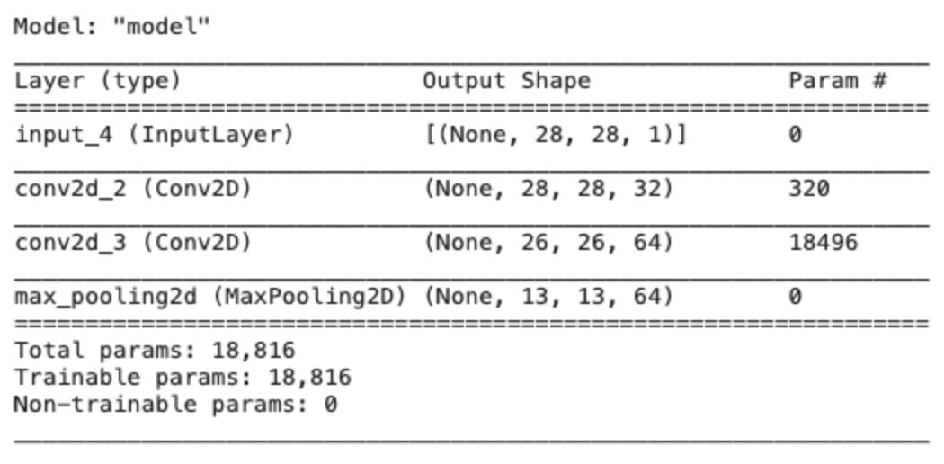 - Param# of conv2d_2 = weight + bias = 3*3*32 + 32 (if kernel size is 3*3)