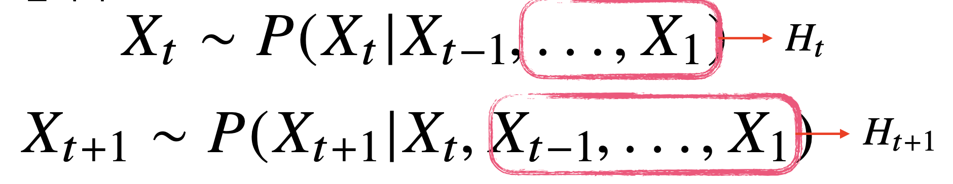 - 즉 이전 sequence를 가지고 앞으로 발생할 사건의 확률분포를 구할 수 있다.