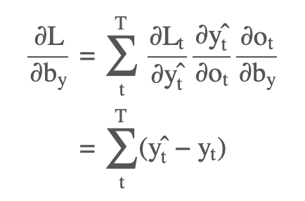 derivative of cross entrophy loss w.r.t. ot is (yt^ - yt)
