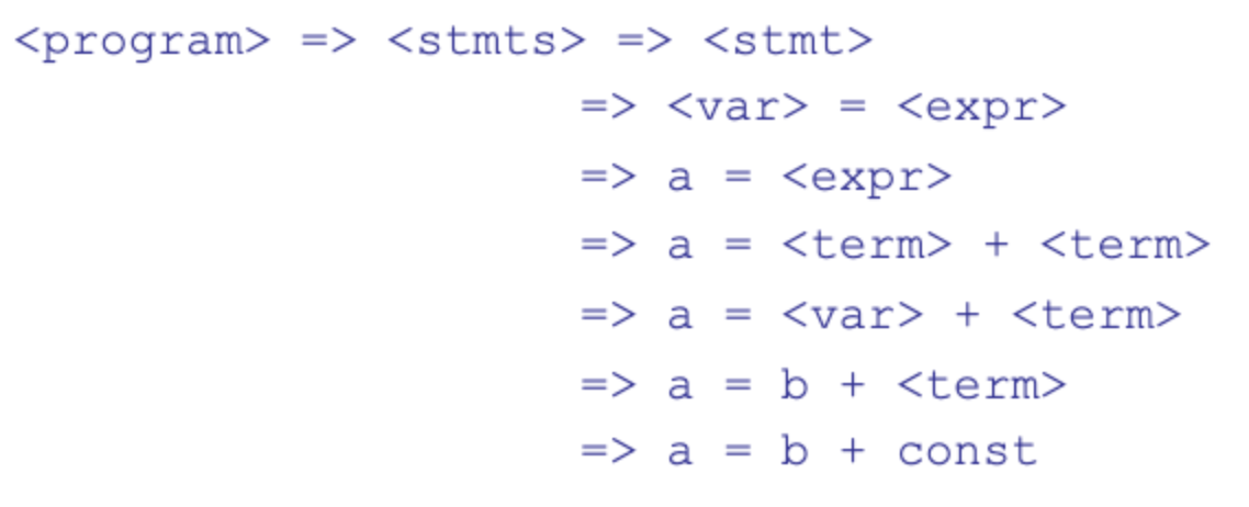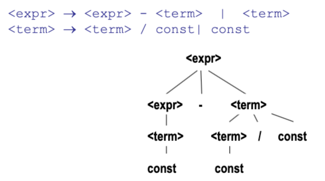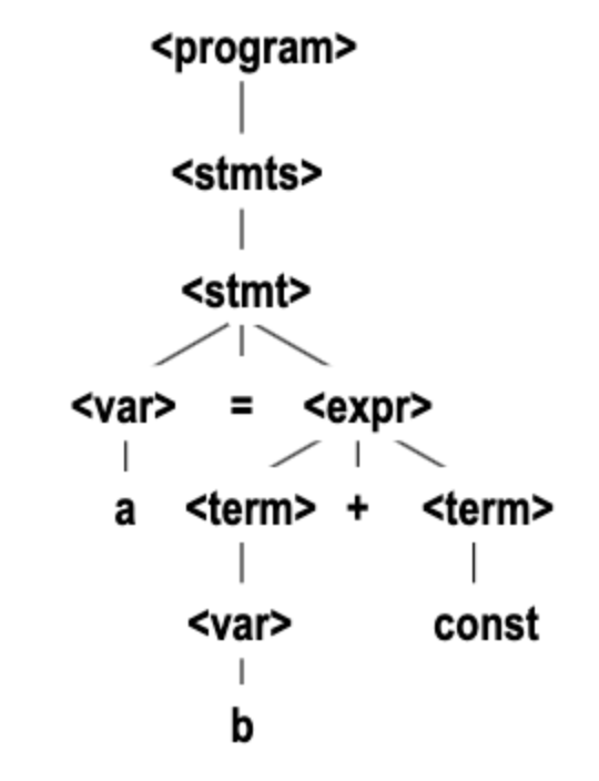 0~9 : terminal symbol, can not be derived anymore, leaf node, terminals are lexemes or tokens