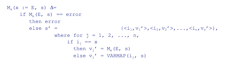 x라는 변수의 값을 변화시킨다는 뜻이다. x라는 변수가 없으면 새롭게 VARMAP<i, v>를 만들고 이미 있다면 Me(E,s)로 vj를 변화시킨다.