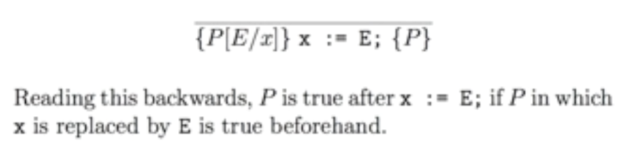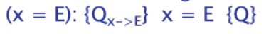 x:=E라는 코드가 실행되다가 Q라는 결과가 나왔을때 그 전 상태는 어떻게 되어야 할까?