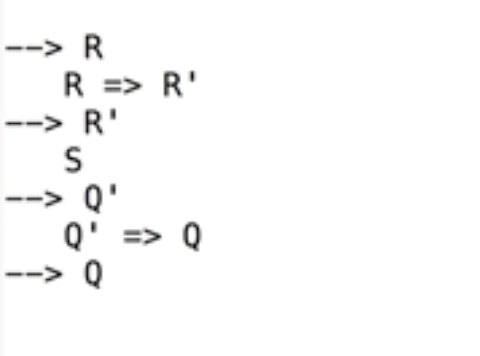 {5 + 1 = 6} -> {Q}, {Q} -> a:=5 {a + 1 = 6}