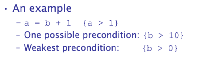 postcondition이 a>1일때, a = b + 1이 실행되기 전 상태는 뭘까?