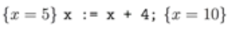 {5 + 1 = 6} a:=5, a := a+1 {a=6}