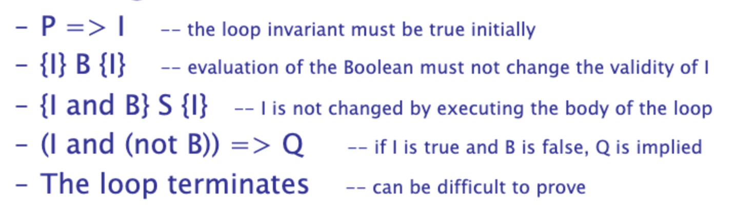 이건 Invariant의 특징에 대한 설명이다. 결국 I는 변하지 않는다는 것을 의미한다. 하지만 loop가 끝난 뒤에 I에 대해서는 장담할 수 없다.