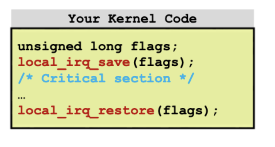 이렇게 critical section은 interrupt로부터 보호할 수 있다.
