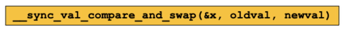 compare and swap은 x랑 oldval이 같으면 x에 newval을 write한다. 마찬가지로 return value는 previous value이다.