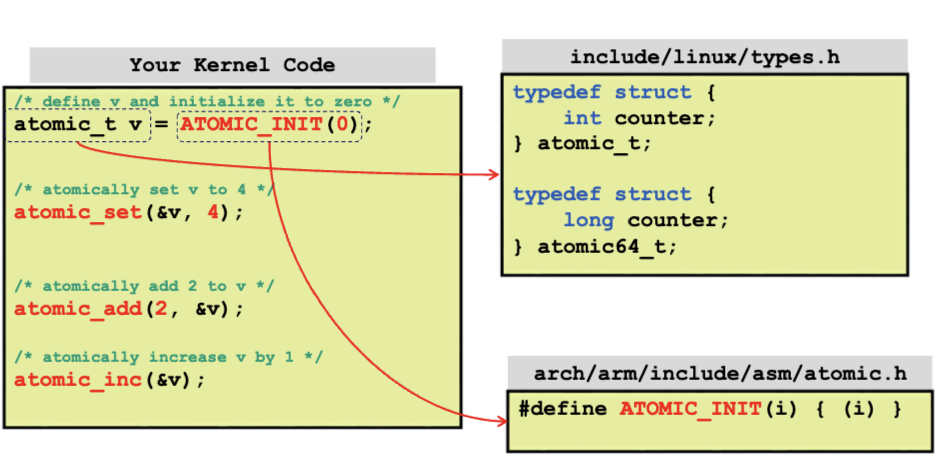 atomic_set등의 함수를 활용하면 특정 global 변수를 보호하기위해 lock을 사용하지 않고도 편하게 (게다가 성능도 훨씬 빠르다) critical section을 보호할 수 있다.